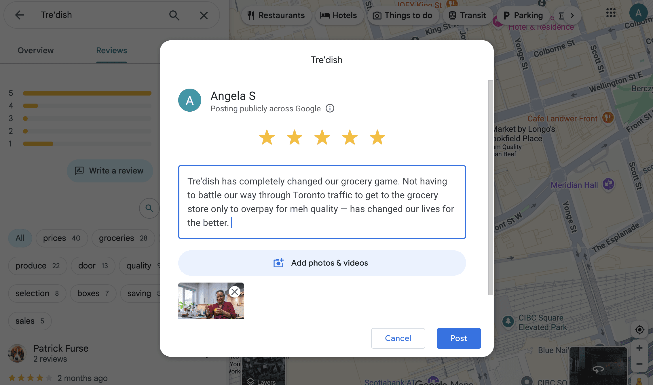 Hands down Tre'dish has made big a difference in our lives. We don’t drive, so not having to carry heavy groceries without paying a premium was immediately attractive